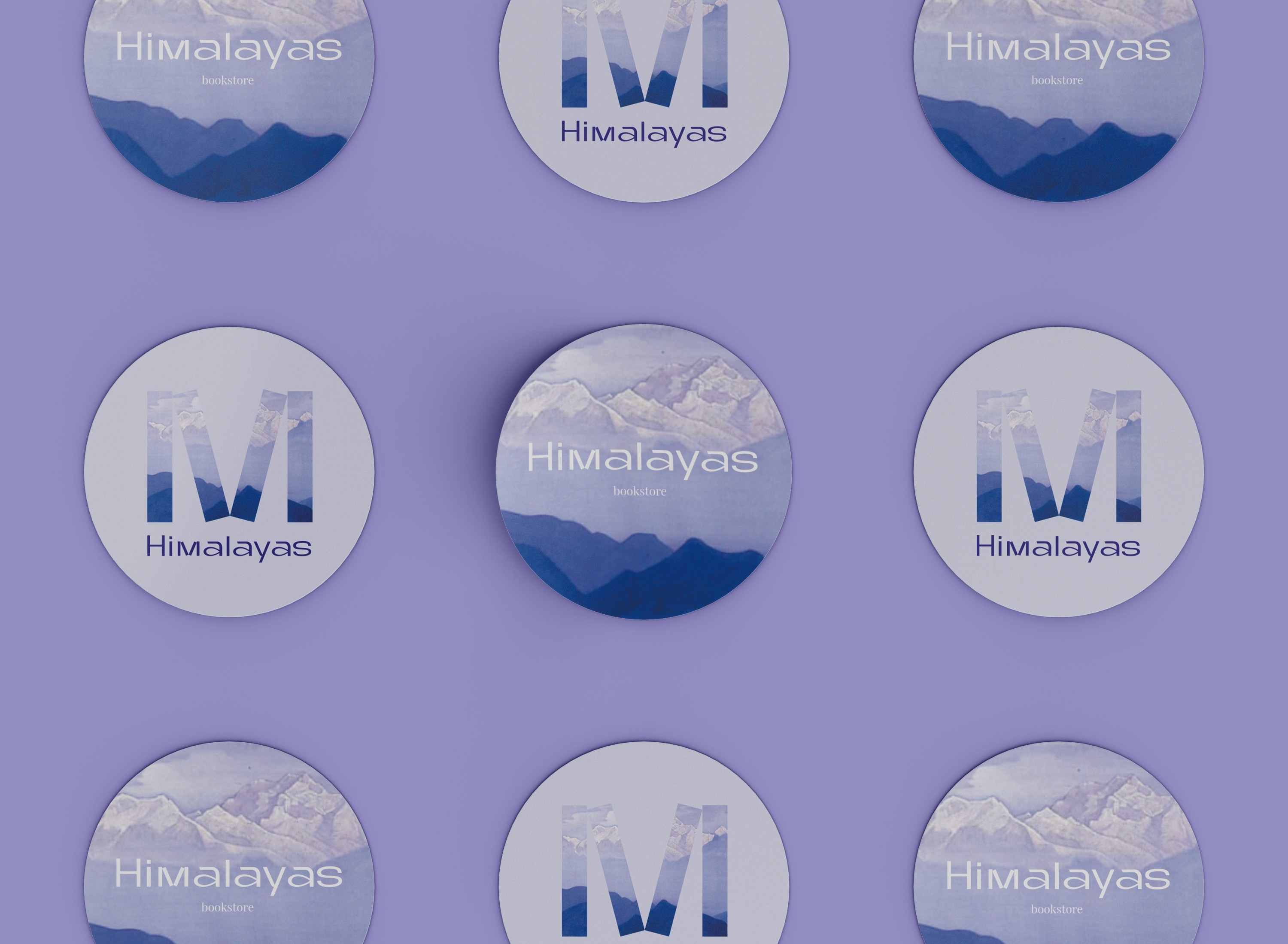Visual identity for the bookstore inspired by Himalayas: a series of paintings by Nicholas Roerich.